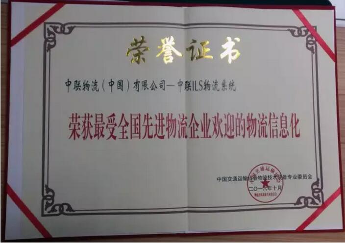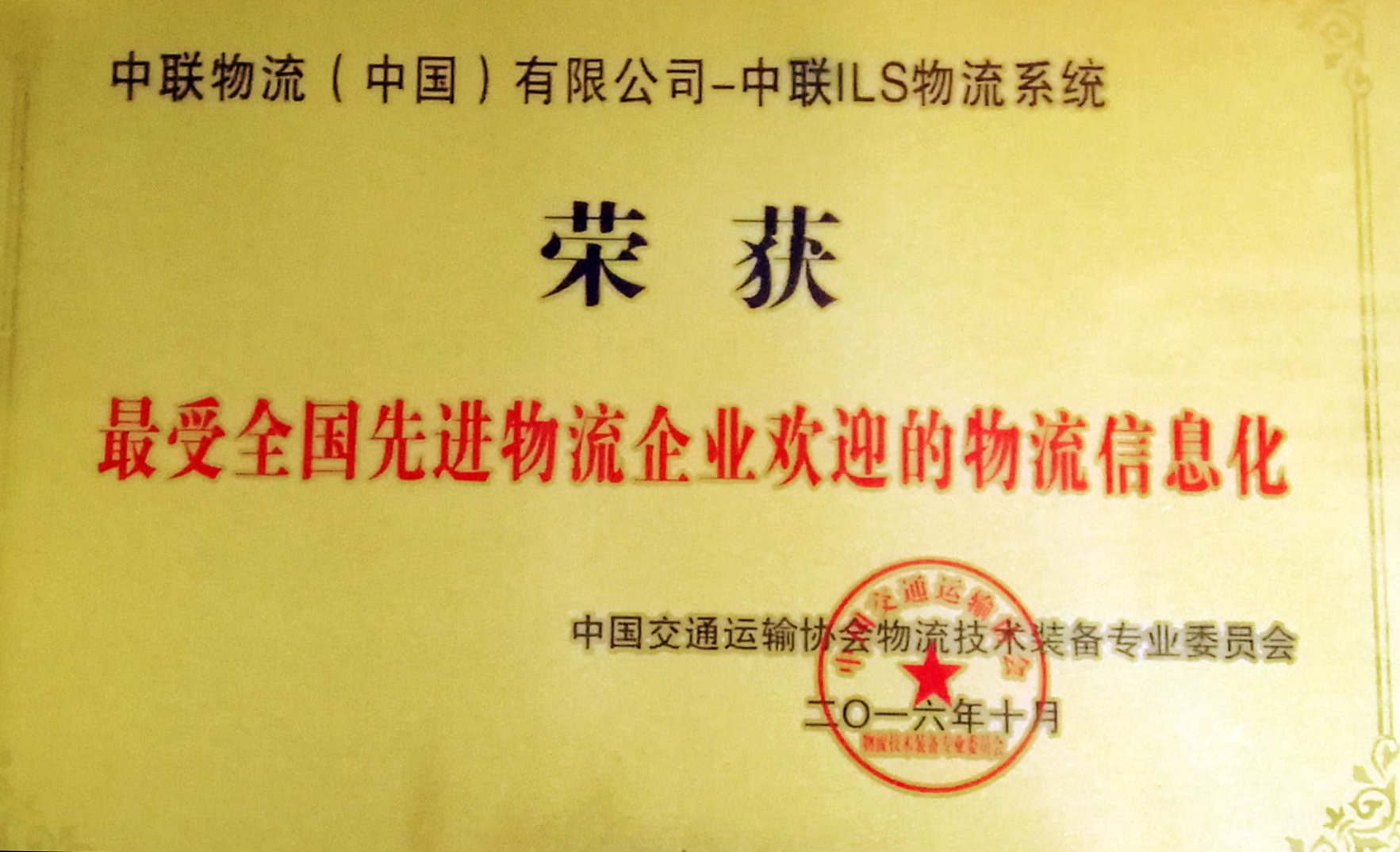 凭多年在汽车物流行业的供应链管理经验及领先信息技术的智慧运用,中联物流ILS物流系统实力再得认可,在颁奖典礼上荣获“2016年度最受全国先进物流企业欢迎的物流信息化大奖”。