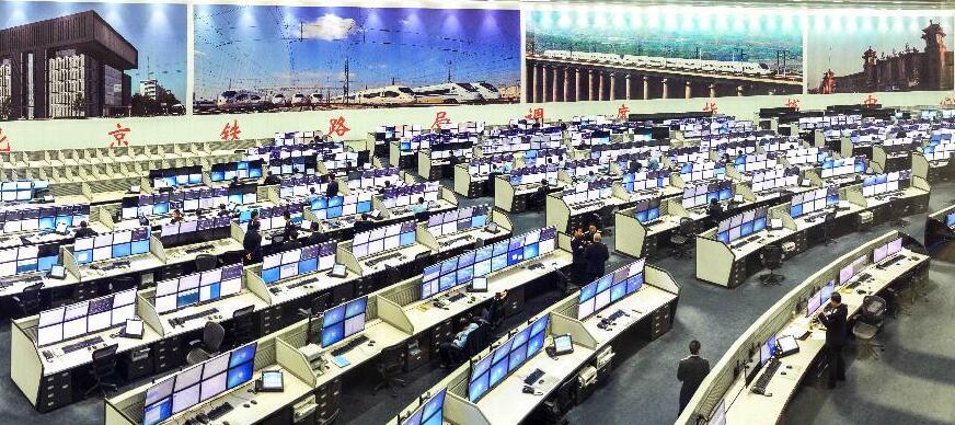 北京铁路局调度指挥中心号称“目前亚洲最大的调度生产指挥中枢”,总面积达4050平方米,共设有245个调度工位,主要管辖京沪高铁、京广高铁等17条主要干线,总计管理铁路营业里程7784.6公里,线路总延长19446.6公里。