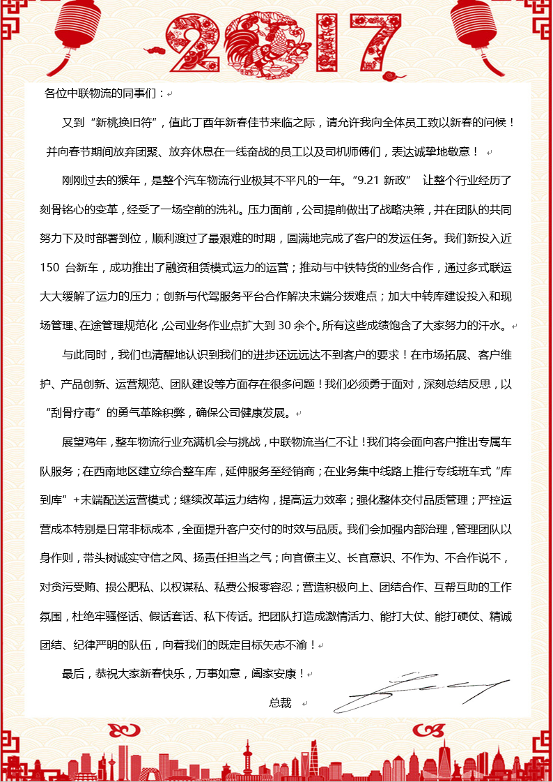 2017年总裁新春致辞