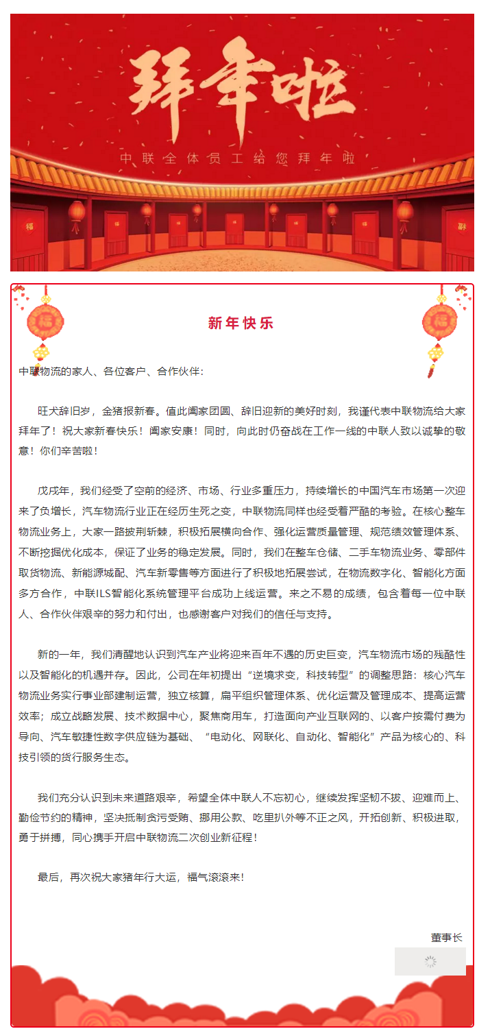 中联物流董事长祝建华先生2019新春祝福