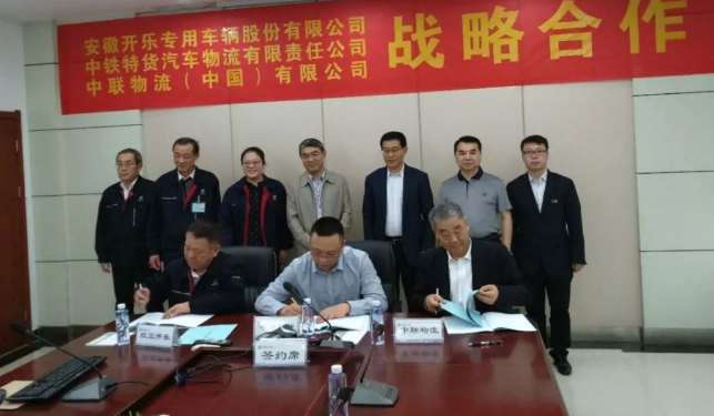 4月11日,中铁特货汽车物流有限责任公司和中联物流(中国)有限公司在阜阳与安徽开乐专用车辆股份有限公司成功签署战略合作协议!