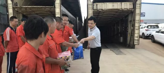 中铁特货南昌分公司总经理杨长乐先生向连续高温仍坚持在密闭车厢内开展装卸作业的紧固工师傅、装卸司机和全体现场管理人员表示诚挚的问候和衷心的感谢,对大家在高温天气下仍然坚守岗位、辛苦工作的精神表示高度赞扬,鼓励大家要再接再厉,克服高温酷暑,发扬拼搏精神,保质保量完成任务,并现场向员工发放了绿豆、西瓜、凉粉等防暑降温物品。全体员工表示备受鼓舞,将继续保持发扬吃苦耐劳的精神投入工作,圆满完成每一个任务。