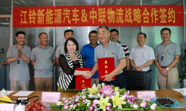 7月4日,江铃集团董事局董事、江铃新能源汽车有限公司总经理刘年风女士一行在中联物流(中国)有限公司总部与中联物流成功签署了战略合作协议!中联物流董事长祝建华先生、副总裁卢水芳先生、副总裁田代和雄先生、财务副总裁祝丽女士等相关领导共同出席了签约仪式,双方就建设江铃新能源汽车全程供应链服务体系和江铃新能源汽车市场开发等相关内容达成共识,并确认了进一步战略规划、促进双方合作再升级。