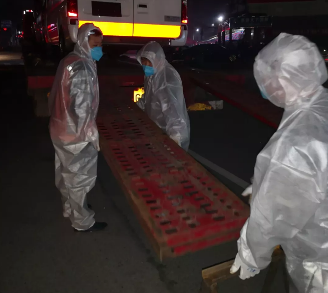 胡国光:其实工作就是互相理解、支持,都是一个团队,先做思想工作,实在不行我、周金龙、王敏顶上。所以,就每天跟大家谈心,一点点消除他们的顾虑,慢慢地有些人没那么抵触。尤其是周金龙、胡胜光他们提前到公司给大家准备护目镜、防护衣、N95口罩、酒精、消毒液,大家态度也开始转变。本来要9个人的,就6个人答应,出发前两天还有三个同事说不去了,我就赶紧联系老乡井立录、印爱军、张强业、董爱国四个人,他们二话没说就答应下来,当时他们村都要封路了,他们当晚买火车票赶到南昌。送车去的那天,印爱军、张强业、董爱国还一直让我带他们去武汉。