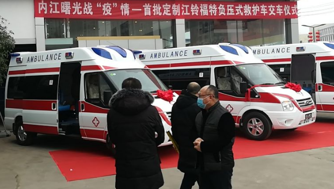 2月7日15点30分,从江西南昌发往四川内江的3台救护车成功交付给四川省内江市第二人民医院。从南昌启运到交付内江医院, 1600公里运距,用时不到48小时,中联物流、中铁特货南昌分公司联手刷新了JSQ5型车的运输时效,为内江医护人员赢得救治病人的时间,为抗击疫情贡献联运力量。