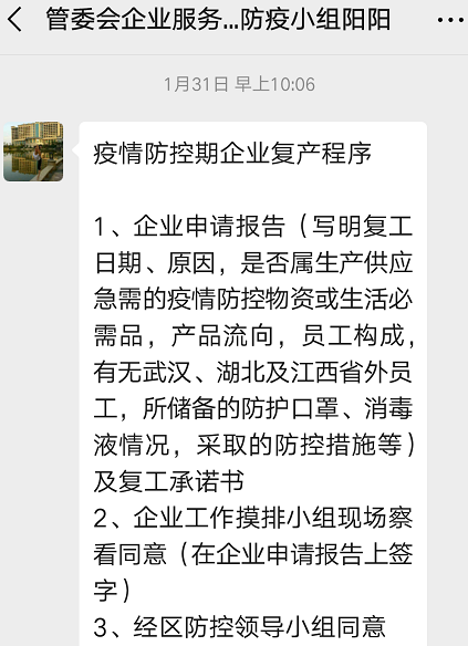 自疫情发生以来,小蓝管委会第一时间组建企业工作小组,实施“战时”网格化管理,深入每家企业督导防疫工作,解决企业复工复产中遇到的各种问题,为企业提供“包干式”服务。考虑到公司是经开区重要的物流企业,管委会特派“网格员”——企业服务中心项目推进处处长别阳洋全程协助公司复工复产及防疫防控工作。