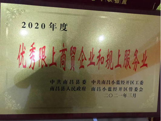 2021年3月2日,在2021年南昌县三级干部暨“转作风优环境”活动年动员大会上,江西中联智能物流有限公司喜获“优秀限上商贸企业和规上服务业”称号。