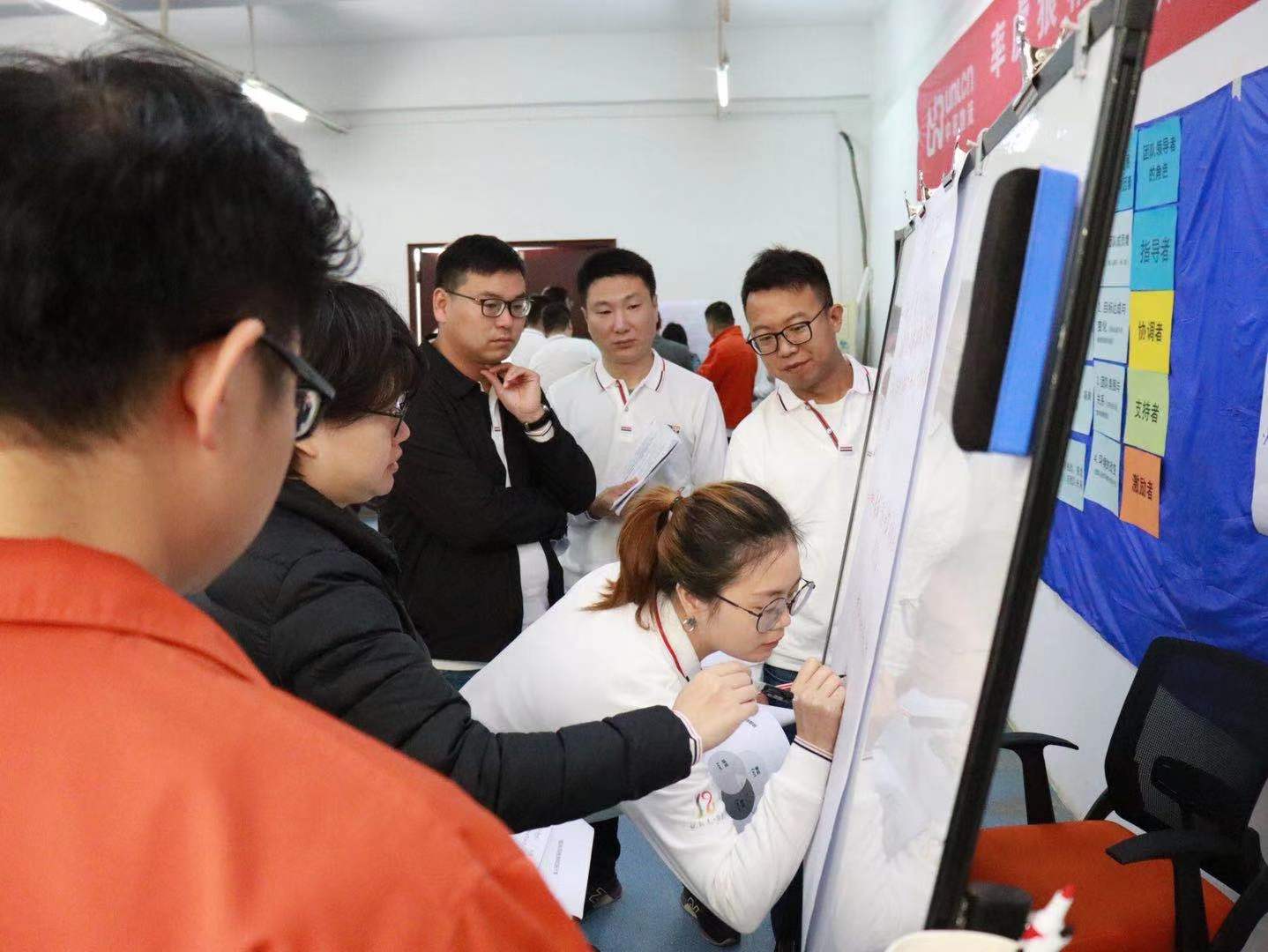 合影后公司趁热打铁安排了“茶话会”形式的座谈总结会,大家在轻松愉快的氛围下,各自现场整理了此次的培训心得体会。其中,小兰基地负责人贺媛、零部件现场运营负责人丁艳艳等代表分别做了心得分享,她们就各自团队现状结合培训内容做了深度剖析及方法改善等阐述。