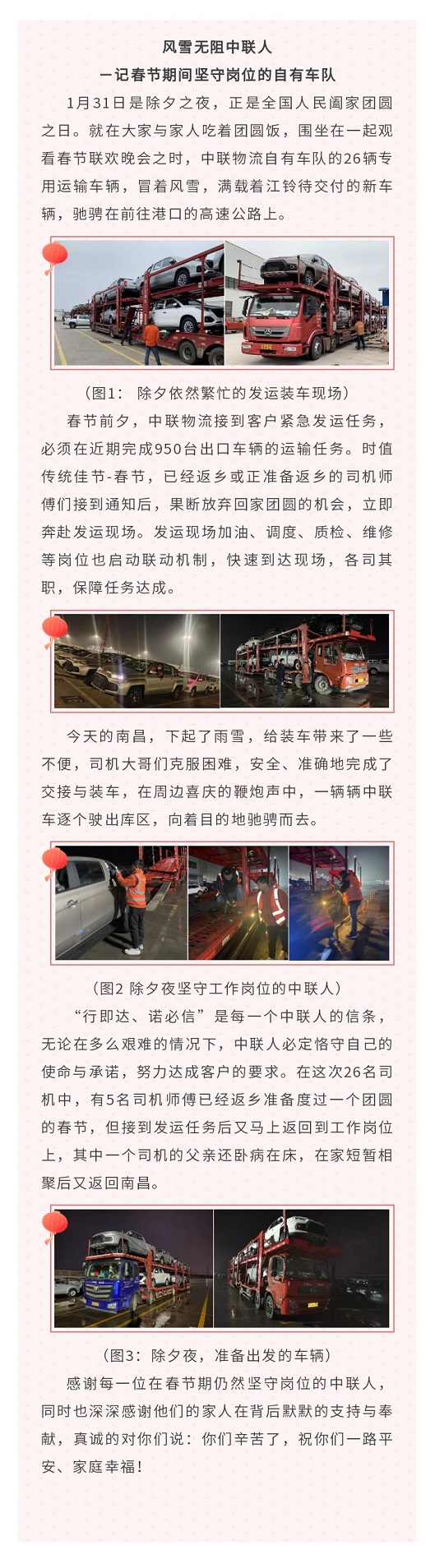 风雪无阻中联人 -记春节期间坚守岗位的自有车队