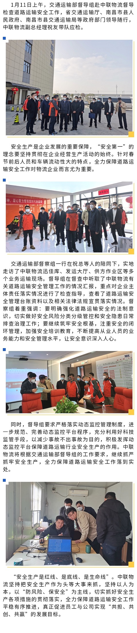 交通运输部督导组一行赴中联物流督导检查道路运输安全工作