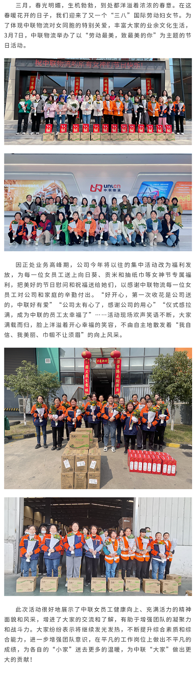 “劳动最美,致最美的你” ——中联物流举办“三八”妇女节活动