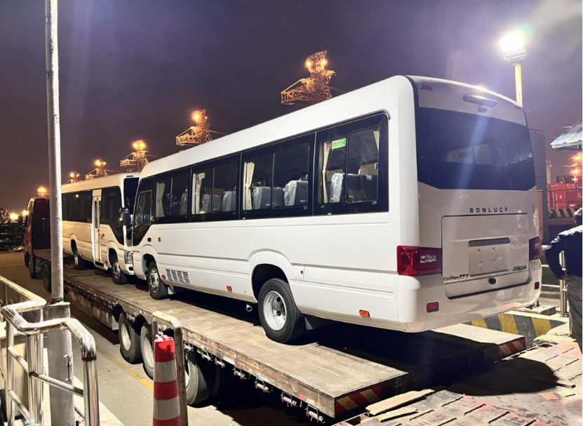 中联物流接客户需求将十台百路佳巴士出口至阿联酋,巴士的体积、重量给长途运输带来双重考验,加之对运输稳定性的严苛要求,让此次跨国之旅充满了挑战。但这并不能难倒国际业务部的团队,他们迅速剖析巴士的规格参数,果断选定滚装船的运输方案,制定科学合理的装载方案,运用专业的固定设备和技术,对巴士进行精准定位和牢固固定,严控细节确保商品车的安全和稳定性。