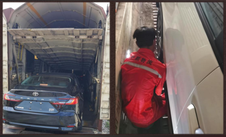中联物流深耕汽车物流领域,拥有丰富的行业经验和完善的物流体系,二十三年专注服务于汽车供应链产业,一直致力于为客户提供全方位、定制化的物流解决方案。此次合作中,中联物流主动发掘客户需求,从客户需求出发,针对广汽丰田待运的凯美瑞、汉兰达等不同车型的具体数量、车身尺寸等量身制定了最优的物流配载方案,既能满足运输时效,又能实现有效的降本增效,获得了客户的一致认可。通过“信息化平台+多式联运”的智慧物流模式,实现了运输订单实时追踪,提升了传统物流的时效性和安全性。 对于首发商品车在车厢里的装载作业环节,中联团队以认真、细致、专业的态度对待。装车作业开始前,安全员率先对JSQ6型车厢的整体状态展开了安全检查。装车作业阶段,全程以标准化装载流程为行动指南,按配载方案有序停放的位置进行校准,每一个环节都严格对照规范执行。检查环节,作业人员更是按照作业标准,对商品汽车的加固情况及安全距离等进行检查,切实保障了装载的可靠性,也为后续运输环节的安全稳定筑牢了坚实防线。