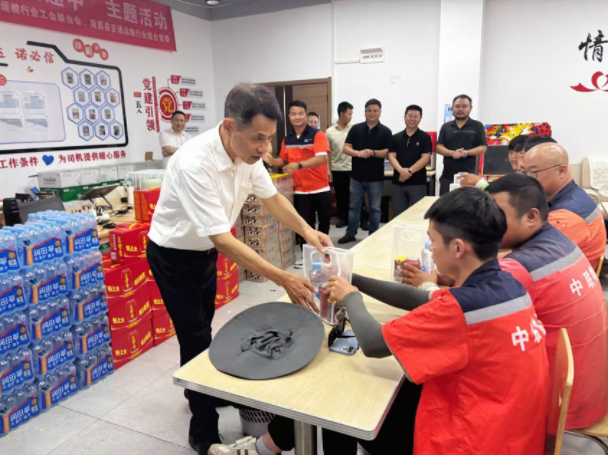 活动提前为货车司机们准备好了“清凉”大礼包,礼包的物品种类丰富:矿泉水、王老吉、凉粉等,全方位为大家抵御酷暑、安心工作保驾护航。熊书记热情地将一份份满载关怀的福利物资递到大家手中,同时反复叮嘱大家在高温环境下作业、出行时,务必做好防暑降温措施,合理安排作息,确保自身安全与健康。拿到清凉礼包的司机们脸上洋溢着笑容,激动地说道:“我们不仅有公司的高温福利,而且还能享受到政府发放的清凉礼包,真是收获满满呀,工作和生活都更有干劲了!”