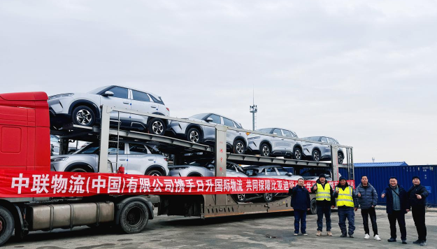 12月16日,满载着比亚迪出口车的中联车队途经霍尔果斯口岸成功到达哈萨克斯坦的雅尔肯特市,当天举行了比亚迪年底跨境整车发运仪式,中联销售团队也到场参与,此次出口车的顺利发运是中联物流成功拓展中亚出口路线的重要实践。