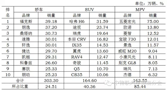2014年乘用车品牌销量前十位排名
