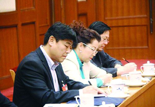 全国人大代表、上海铁路监督管理局局长唐士昇(左)。资料片