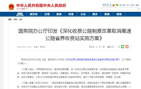 5月21日,国务院办公厅印发《深化收费公路制度改革取消高速公路省界收费站实施方案》,实施方案表明:从2020年1月1日起统一按车(轴)型收费,确保不增加货车通行费总体负担,同步实施封闭式高速公路收费站入口不停车称重检测。